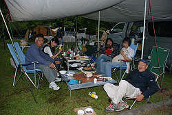 キャンプ場に戻ると、今回参加のメンバーが続々集結。 |