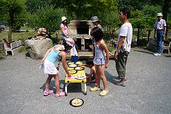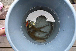 焼きあがる間、子供達はマスのつかみ取り。 |
