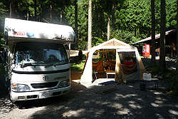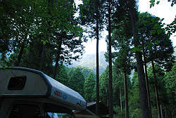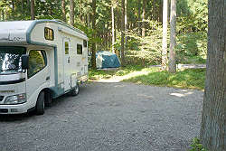 森林の中で日差しも和らぎ、とにかく涼しいキャンプ場です。 |
