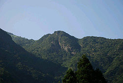 険しい山に囲まれたふもとにキャンプ場はあります。 |