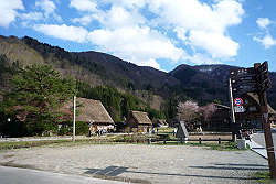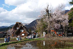 | 15:20 白川郷に到着。 桜が見ごろです。 |