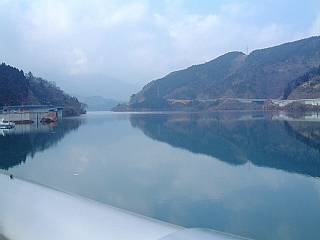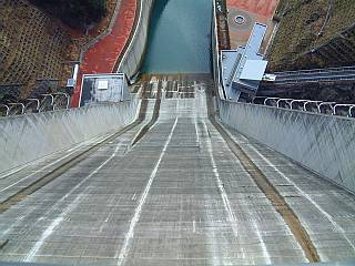 宮ヶ瀬ダムの上より下を見下ろす。