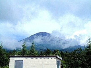 10:33 富士山スカイラインの「水ヶ塚PA」より富士山を写す。日差しは強いが標高が高いので風は冷たくて気持ち良い。行き先のキャンプ場方面の雲行きが怪しい。入道雲が出てきた。