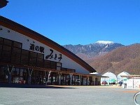 道の駅「甲斐大和」ゲット。長さ約3000メートルの新笹子トンネルを抜けて直ぐの場所にある。トンネル内は車の出す熱で暖かく感じた。排気ガスの中を走るバイクは辛い。短いトンネルだったら息を止めて通過するんだけどね。(笑) ここで、定番の信玄餅を購入。