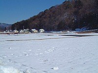 道志街道に入ると、道路の左右に6日前に降った雪がまだ残っている。日が当たらない場所の路面は少し凍結しているので、その場所ではハンドルやバイクのお尻が振れれる。少し「ヒヤッ」とさせる場面も・・・。神経使いながらの走行となる。途中、綺麗に富士山が見える場所に来た。前回写真に収めることができなかったので、デジカメを用意。・・・電源が入らない・・・バッテリー切れだ。幸いなことに単三アルカリ電池が使えるモデルなので途中のコンビにで買うことにして先を急ぐ。