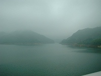 早戸川林道の途中にあるマス釣り場。こんな天気ですが、けっこう釣りしてる人が居ます。バーベQ場には団体さんが来てるみたい。天気が良ければ最高なんでしょうけどね。 |
