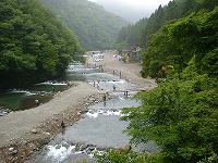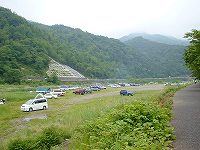 帰りの途中で「田代運動公園」の脇にある河原を視察。天気が悪いけど、多くのバーベQ組が楽しんでいました。 |