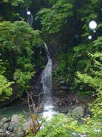早戸川林道。以前はかなり先まで侵入出来たのですが、「丹沢観光センター」のすぐ先に一般車が進入出来ないようにゲートが作られていました。このゲートの先に「早戸大滝」があるのですが、天気も悪いのでトレッキングにて目指す事は断念して、ここで今来た道を折り返しです。※写真は「早戸大滝」ではありません。林道途中にあった滝。名前不明。 |