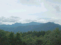 県道27号の峠を越えると見える、南アルプスの山々。 |
