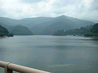 奥多摩湖。ここに来たら太陽が顔を出してきた。 |