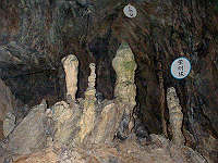 鍾乳石。鍾乳洞に入ると寒いです。平均気温10℃、湿度85%。800mくらい歩きます。急な階段多数有り。年寄りにはキツイです。 |
