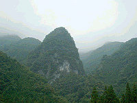 日原街道の日原トンネルを抜けると、日本ではないような風景が・・・尖がった山が「稲村岩」。 |