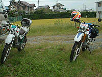 左がくろんぼパパさんのセカンドバイク。右が私のバイク。同じセローです。(笑) |