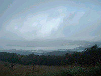 県道147号の三国峠を下る途中で山中湖が見える。晴れていれば三国峠から富士山が一望出来る場所。 |