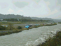 こちらは「田代運動公園」の横の河原。中津川も増水中。 |