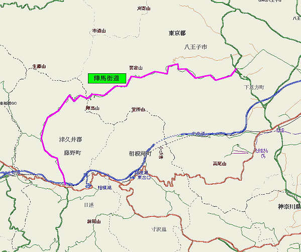 自宅 → 県道47号(町田街道) → 高尾 → 県道61号 → 陣馬街道(上野原八王子線) → 和田峠 → 陣馬街道(上野原八王子線) → 棡原藤野線 → 県道76号 → 県道518(藤野津久井線) → R413 → R412 → 県道511(大井上依知線 → 県道42号 → 自宅