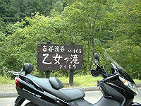 峠を一気に下り、途中の「乙女の滝」でも見学しようと思ったけど、結構歩きそうなので止める。