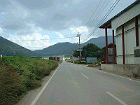 馬越峠を越えて県道68号に出る。