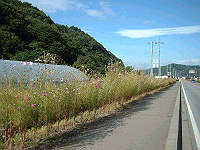 別名「コスモス街道」。街道の両側にコスモスが咲いています。