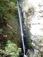 この先行き止まりの県道の脇から、2分ほど徒歩で下ると滝が見えてきます。