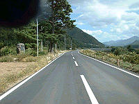 長野県側から撮影。ここまでの道路は、荒れてはいるものの全面舗装。
