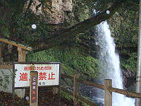 「裏見の滝」なのですが、滝の裏側へ通ずる遊歩道が崩落の危険がある為「進入禁止」となっています。