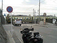 鎌倉高校前駅の近くの「高校前」交差点&踏切。