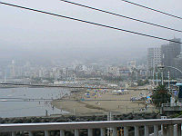 11:00 熱海の海岸では海水浴客が居ますが天気が天気だけに少ないです。