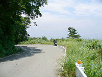 修善寺方面から登って来て、直進は戸田へ。左折は快適なワイディングが仁科峠まで続く楽しいコース。