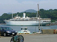 林道瀬戸川線を下ると海が見える、と同時に「スカンジナビア号」が目の前に飛び込んでくる。