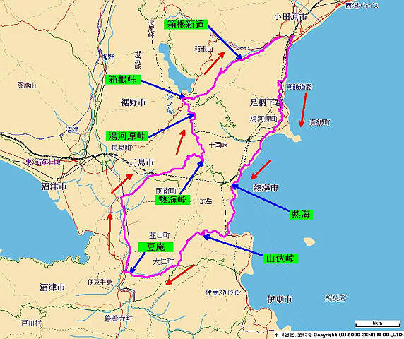 自宅 → 国道246号 → 厚木西IC → 小田原厚木道路 → 二宮IC → 県道709号 → 国道1、135号 → 網代 → 県道80、19号 → 「豆庵」 → 国道136号 → 県道11、20号 → 箱根新道(国道1号) → 小田原厚木道路 → 厚木西IC → 国道246号 → 自宅