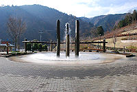 12月から春まで無料となる駐車場に止めて入り口を入ると噴水がお出迎え。
