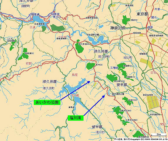 自宅 → 国道246号 → 厚木 → 国道412号 → 愛川町 → 「塩川滝」 → 国道412号 → 「あいかわ公園」 → 県道64、60号 → 厚木 → 国道246号 → 自宅