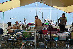 タープの下は湖からの風もあってそれほど暑くない。 |