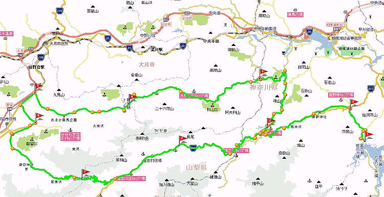 | 自宅 → 国道246号 → 厚木 → 宮ヶ瀬湖 → 道志みち(国道413号) → 「いやしの湯」 → 県道76号 → 県道35号 → 都留 → 県道24号 → 道志みち(国道413号) → 宮ヶ瀬湖 → 厚木 → 国道246号 → 自宅 |
