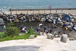 | そして灯台の防波堤は釣り人がズラリ。 |