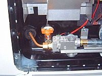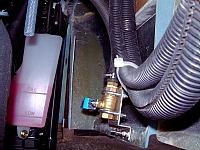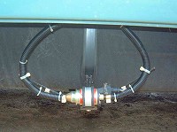 「こんな場所(年式により取り付け位置が違う)で危険では?」と、前々から気になっていたFFヒーターの電磁ポンプ位置。しかし、新型のバンクスやZIL等を見ると、やはり同じ位置なので設置位置の移動は止め、V−MLメンバーの工夫を真似て燃料パイプ及び配線を「コルゲートチューブ」にて保護してみました。 |