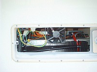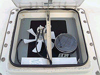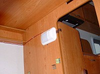 冷蔵庫の廃熱を手助けする目的でPCファンを取り付けた。アメ車のキャンピングカーに比べると、冷蔵庫背面のスペースがとても狭く廃熱効率が悪そうなので、PCファンにて強制排気。