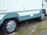 以前のキャンカーもアルミではなく、鉄ホイールにホイルキャップを使用してました。この車もホイルキャップにてドレスアップしました。