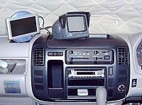 ベース車がトラックなので本体の取り付け場所に少し悩んだが、一番見やすいメーターパネルの上に取付。アンテナは、車両中心より少し運転席側寄りの指定範囲内。