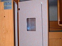 トイレシャワールームのドア内側にアクリル製の鏡を取り付けた。