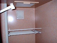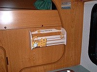 後部の大型収納庫内にハンガー掛けを取り付ける。