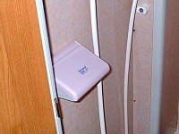 そこで、扉のすぐ脇に移設しました。これにより、扉を開けてスイッチを入れることが容易になりました。 |