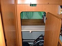 リヤ収納庫内に棚板取付。荷物を積んでみると、意外と高さ方向に無駄なスペースがあり、意外と入らない。