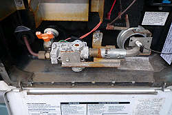 車内は問題なし、ボンベ室も問題なし、冷蔵庫も問題ない・・・するとボイラーから臭う。