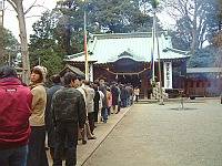 右の写真は初詣の様子。それほど大きな神社じゃないけど参拝には行列が出来ます。まあ、明治神宮のような行列と違い、願い事をする時間がいっぱいあるから良いですけどね。(笑)