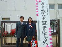 で、卒業生は100人弱と少ないので卒業証書授与式は短い時間で終了。卒業生を校門から送り出すまでの間、父兄に控え室として用意された場所は一年生の教室でした。教室の中を見ていると自分の娘が入学したての一年生の時を思い出しましたね。「ウチの娘は大丈夫なんだろうか?」なんて心配してましたが、なんとか卒業まで無事に過してまいりました。