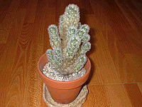 話は変わって、最初は可愛く丸かった鑑賞用のサボテン・・・。数年前に鉢を落としてしまって、植え替えたら花が咲くようになり 今じゃご覧の形に成長を続けてます。しかし、どこまで大きくなるのだろう・・・。 |
