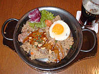 右の写真はランチメニューの「ステーキガーリックピラフ」。