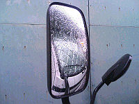 写真はキャンカーのミラー。お出かけしないで冷たい雨に打たれてるキャンカーも、なぜか寒そうにしてる感じがします・・・。 |